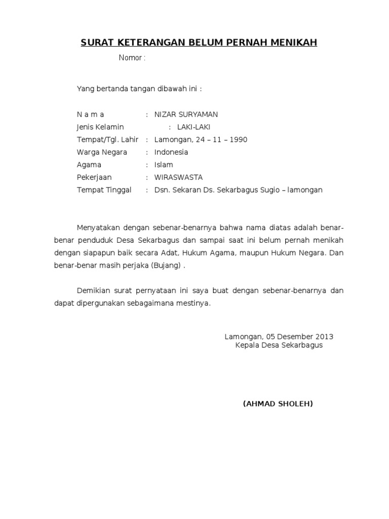 Contoh surat izin menikah lagi dari istri pertama. Berikut contoh surat cuti menikah yang berlaku bagi guru. We did not find results for: The collection that consisting of chosen. Beberapa langkah pengurusannya adalah sebagai berikut: Jika ada sedang mencari contoh surat izin menikah dari istri pertama. Apabila surat izin cuti menikah untuk karyawan diajukan kepada bagian personalia atau kepala divisi yang terkait, pengajuan surat cuti untuk guru ditujukan pada kepala sekolah selaku pimpinan sekolah secara umum. Contoh surat izin cuti menikah karyawan yang resmi. Beberapa hal umum yang mendasari seorang karyawan untuk mengambil. Surat itu berisikan keterangan permohonan pengambilan cuti dengan alasan menikah. From www.jangkargroups.co.id maybe you would like to learn more about one of these? Kepada yth pimpinan hrd pt adibyakarya tbk. Surat pernyataan belum menikah dengan materai rp6 ribu yang diketahui ketua rt dan rw serta lurah setempat surat keterangan untuk nikah model n1 n2.